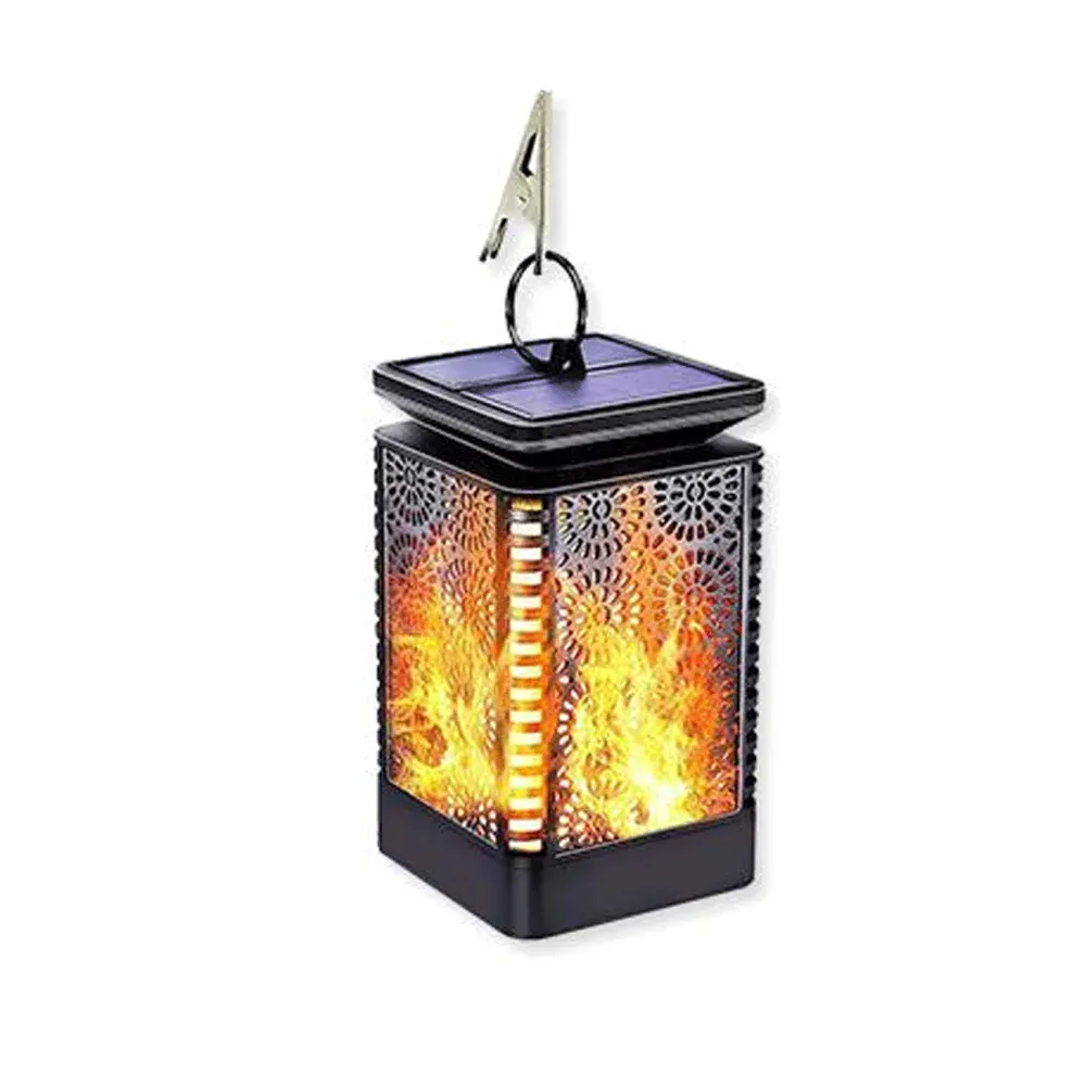 LED solární lampa, dekorativní, čtvercová s plamenem