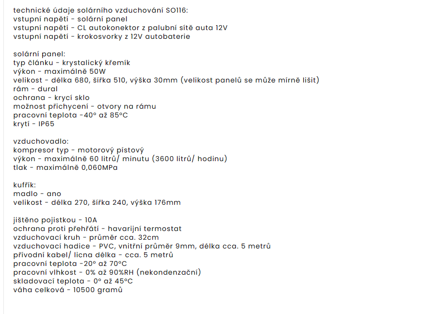 SO116 50 W solární systém pro provzdušňováníV prodeji7 388 Kč/ ks6 106 Kč bez DPH