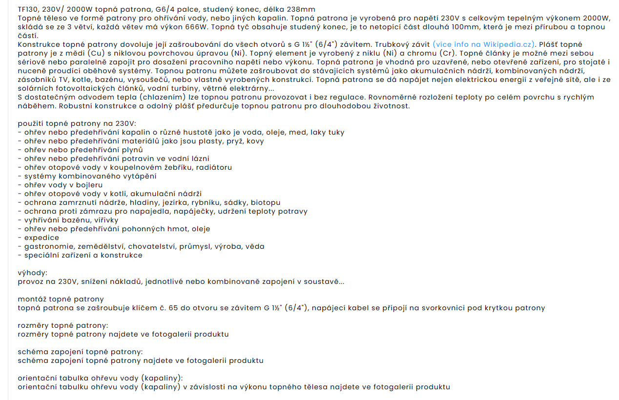TF130,230V/2000W topná patrona G6/4 palceSkladem1 603 Kč/ ks1 325 Kč bez DPH