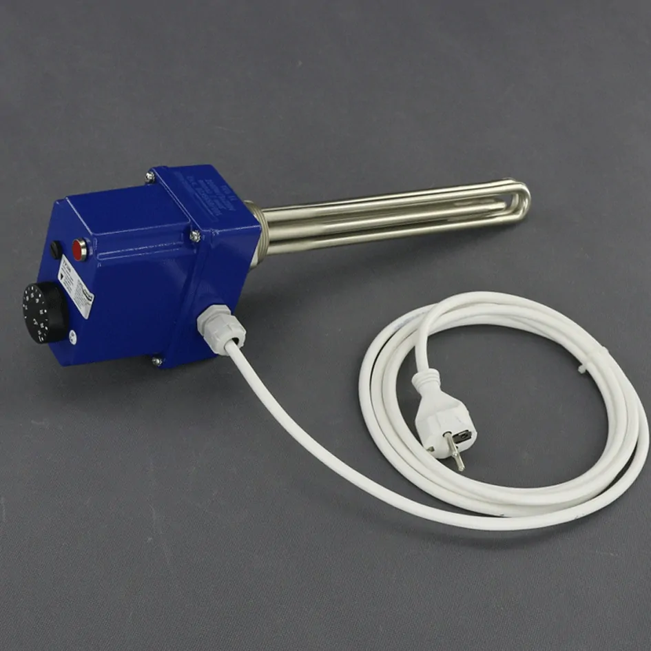 Topné těleso s termostatem ve formě patrony pro ohřívání vody, nebo jiných kapalin. Topná patrona je vyrobená pro napětí 230V s celkovým tepelným výkonem 2000W, skládá se ze 3 větví, každá větev má výkon 666W. Konstrukce topné patrony dovoluje její zašroubování do všech otvorů s M48 x 2mm závitem. Trubkový závit (více info na Wikipedia.cz). Plášť topné patrony je z mědi (Cu) s niklovou povrchovou úpravou (Ni). Topný element je vyrobený z niklu (Ni) a chromu (Cr).